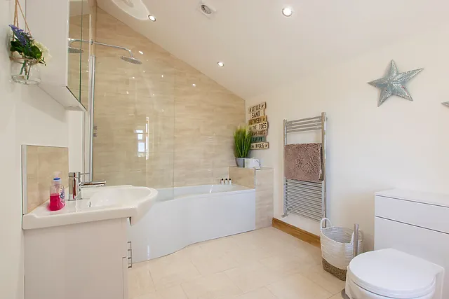 Step outside to discover a private, dog-friendly garden, complete with an alfresco dining area. The highlight, however, is the indulgent wood-fired hot tub, promising relaxation under the stars.