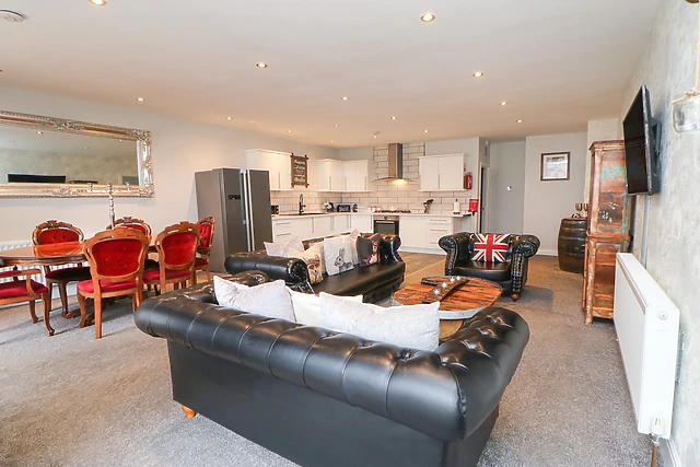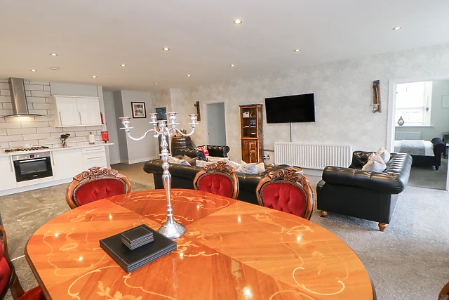 Across the road from the apartment is the local high street with shops, pubs, chemist and other amenities.Opposite the Castle is the Durham Dales visitor centre where leaflets can be obtained for days out. The open-plan living area has been tastefully styled with a charming lounge and a characterful dining area, set-up for six people.
