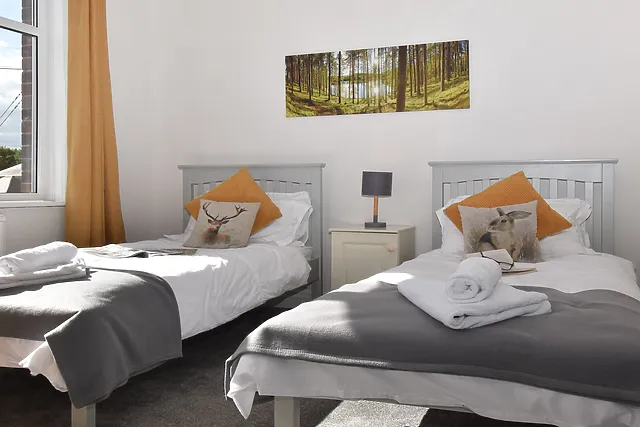 The accommodation features three bedrooms, comprising one king-size, one double, and one twin room, catering to various group sizes and family needs.