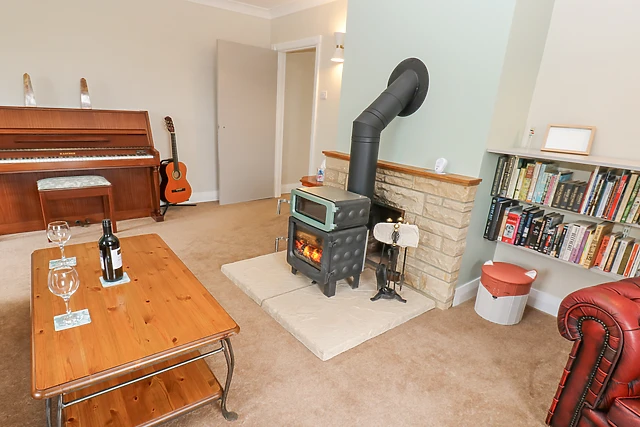 The sitting room, complete with a Smart TV and a warming woodburning stove, offers a snug space to unwind and catch up on your favourite shows or enjoy a family movie night. Outside, the enclosed grounds feature a small woodland, lawns, mature trees, a patio and a gravelled area complete with furniture for alfresco dining or simply enjoying a morning coffee while planning your day.