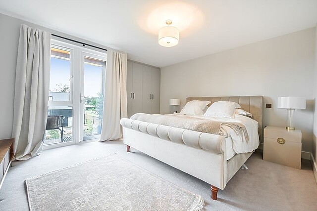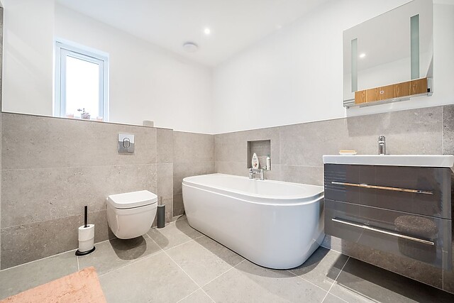 Upstairs, three inviting bedrooms wait to embrace you, featuring two plush double beds, while the third enjoys the added luxury of an en-suite with a walk-in shower. A separate bathroom with a bath provides a peaceful space to soak and relax.