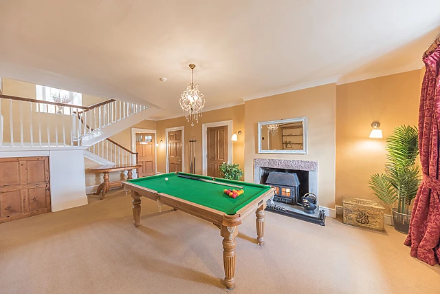 Upon arrival, there are six off-road parking spaces to greet you, before stepping to the entrance hall leading to the games room, where you can challenge each other to a game of pool and while away the hours on a rainy day. Allow the designated chef to relish in the farmhouse style kitchen, appointed with a wonderful selection of amenities including a range cooker with 7-ring gas hob and AGA cooker, ideal for rustling up hearty feasts.
