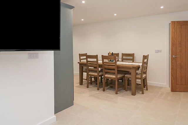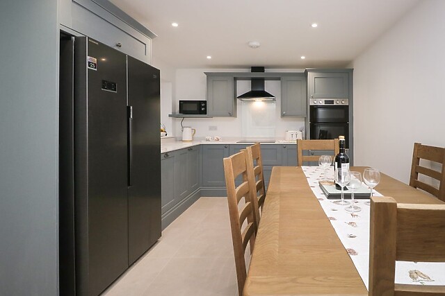 Suitable for families or friends with stunning panoramic countryside views, underfloor heating, and a hot tub. You can appreciate the tranquil countryside on the drive to the farm and property; the space is utilised with plenty of off-road parking for the whole group.