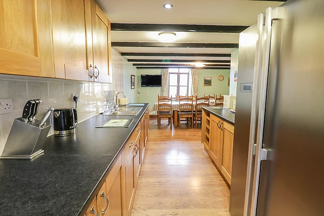 On entry to the property you are in the hallway. To the left is the galley-styled kitchen which is well-equipped to prepare some home-cooked meals to then enjoy on the large dining table at the end of the room; making it a great place to discuss plans for the day or to talk about that dayÂ’s adventures.