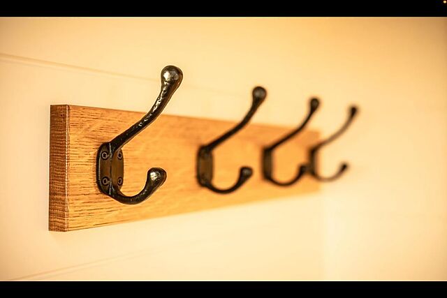 The king-size bed, tucked at one end, has gorgeous views and is delightfully cosy, featuring soft bed linens and wall-mounted lighting. The dining table has space to unfold maps and walking guides, or play a board game (all supplied) and can then be folded away to create more room.