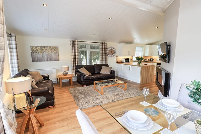 Designed to accommodate up to four guests, the lodge boasts two cosy bedrooms and two well-appointed bathrooms, ensuring privacy and convenience for all.