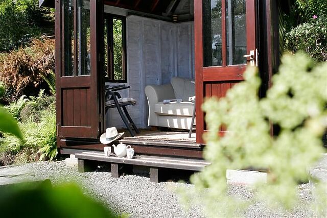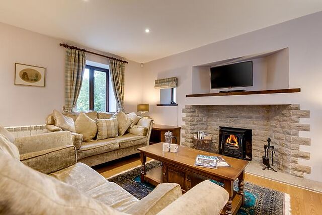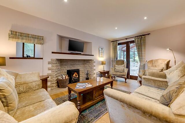 Inside, you'll find a cosy lounge with a granite fireplace and wood burner, perfect for relaxing evenings.