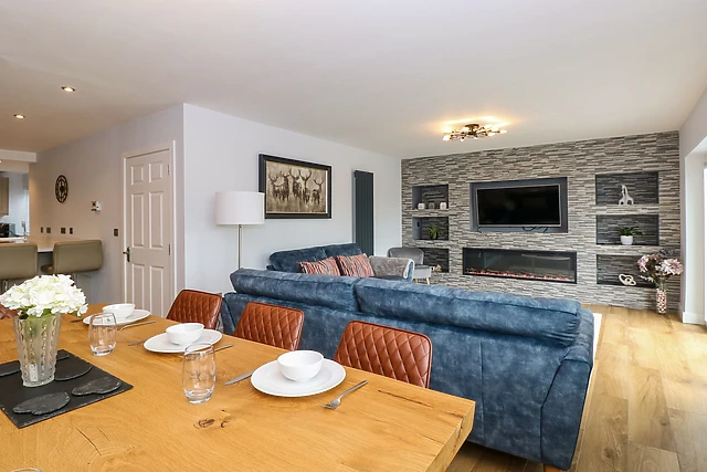 Make use of the large rear garden when the sun is shining, being cautious of the non-enclosed pond, and why not spend an evening soaking in the hot tub as you stargaze? When sleep calls, wind down with a steaming shower and slip into the freshly-washed linens of the beds.