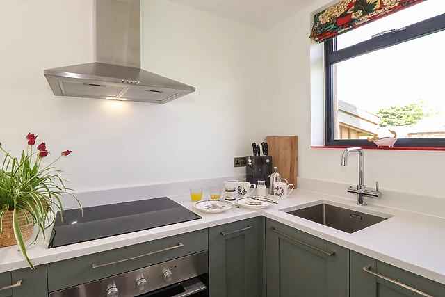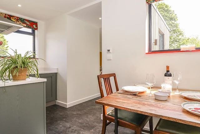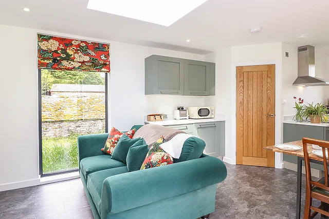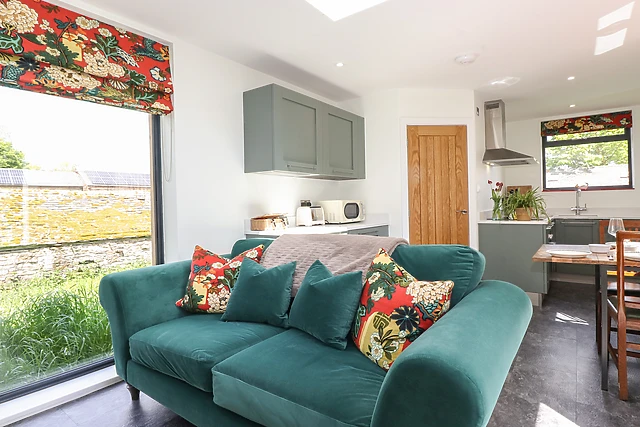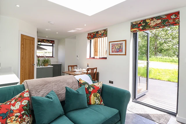 Inside, the open-plan living space boasts a floor-to-ceiling window and a sky light, allowing the light to roll in, with a handy patio door and space to cook, dine and unwind after a busy day out. After an exciting day, get some much-needed rest in the bedroom, home to a plush super-king-size and when you wake, the sleek shower room awaits you with complimentary bathrobes, to freshen up before your day starts.