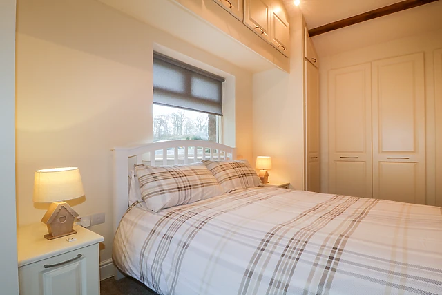 Set on one level, the flow of this ground-floor two-person retreat is a delight as you take in the spacious living area. Beams straddle the vaulted ceiling in the sitting-room section, with its comfortable furniture, sandstone feature fireplace and patio doors into the private decking area beyond.