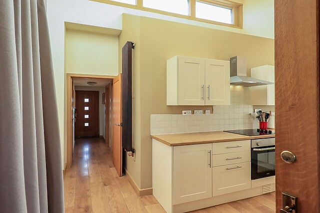 Step into your new haven constructed entirely from timber, most of which being larch felled locally, and insulated with sheep’s wool, creating an eco-friendly, rustic, and warm home for you to relax in. Glide across the hardwood floors of the open-plan living space to sink into the sitting room with a film on the TV, as a scrumptious supper is whipped up from the electric oven and hob, microwave, and fridge/freezer.