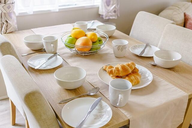 The kitchen is fully equipped for self-catering, while outside, the private decking area features comfortable seating and a BBQ.