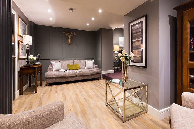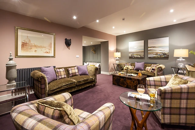 Across the hallway is the formal sitting room with comfortable sofas, armchairs, large screen TV and patio doors to the garden. To the side is a cosy snug and reading area which is a little haven in which to relax with a good book or the weekend papers.