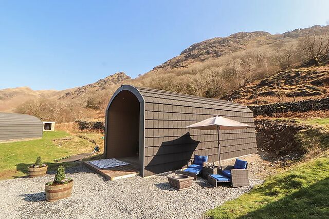 Bluebelle - Crossgate Luxury Glamping is an inviting pod resting in Hartsop, Cumbria, offering an appealing escape for two with a mezzanine king-size bedroom, thoughtful open-plan living, and an outdoor fire pit area. Step inside to find practical touches from the start, with hangers and a boot rack to the left, ready for walking gear after days in the Cumbrian air.