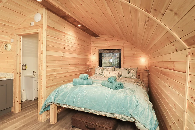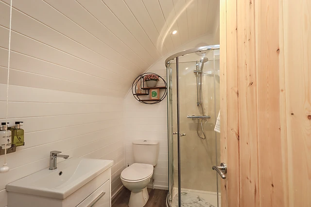 Discover the enchanting retreat of Jenny at Crossgate Luxury Glamping, where rustic charm meets modern comfort. This idyllic haven is perfect for couples or a small family, sleeping up to four guests in a studio-style layout with a sumptuous king-size bed and a convenient sofa bed.