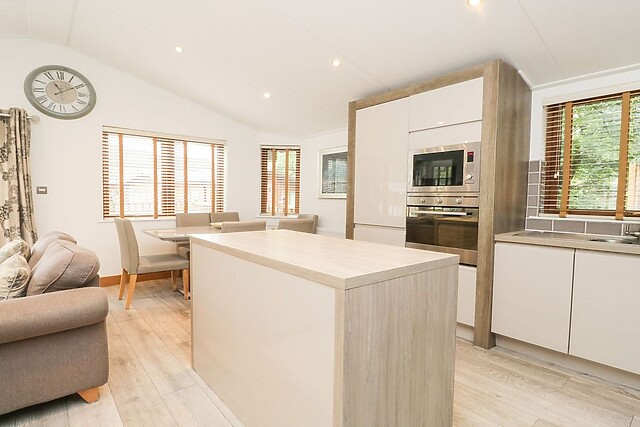 This lodge sleeps seven people so is ideal for couples or families with children. Relax in the bright and open living/dining area where everyone can enjoy watching TV or chatting in front of the feature fire.