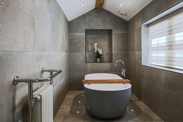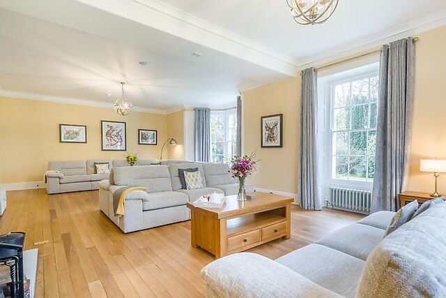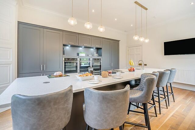 With features such as two ovens, a wine fridge and a coffee machine, you will be able to cater for your party with ease in this superb space. There is a long central island with a breakfast bar, where you can chat over fresh coffee or a bottle of cold white wine pulled from the chiller.