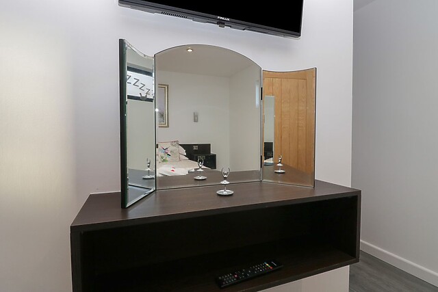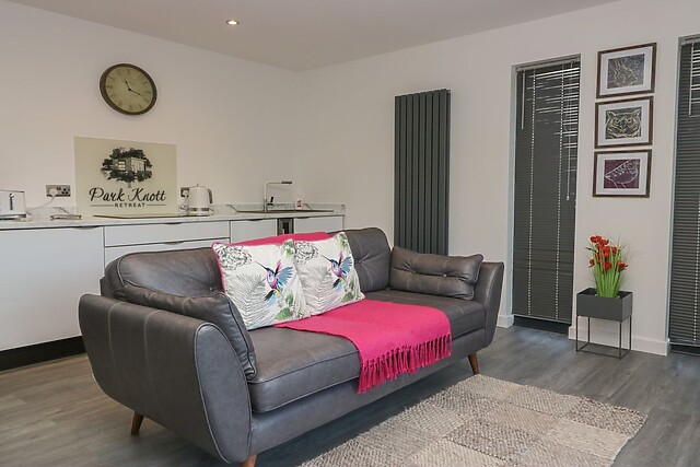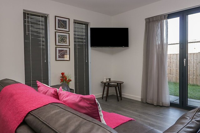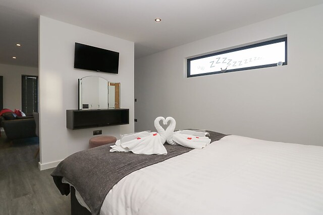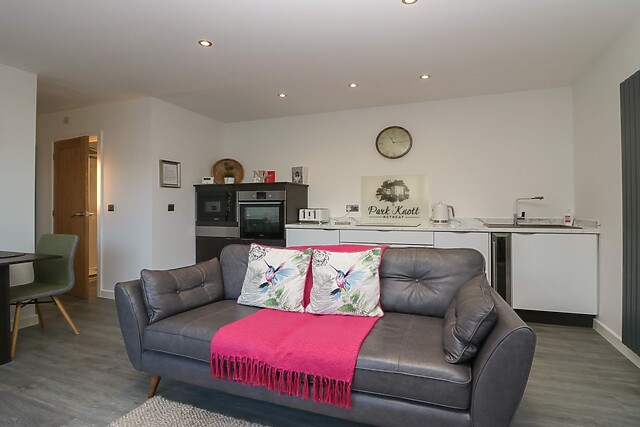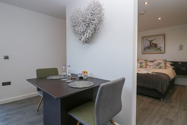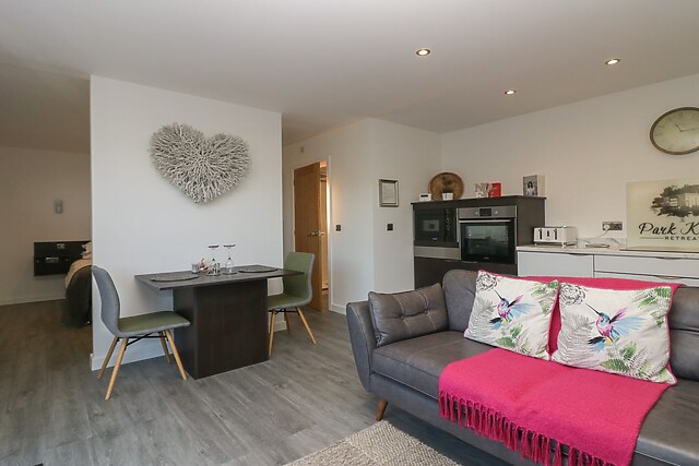 The kitchen comes equipped with a gas cooker and oven, ideal for preparing a romantic meal, while music from the Smart TV sets the perfect mood. The contemporary en-suite bathroom, includes a spacious shower, adding a touch of luxury to your experience.