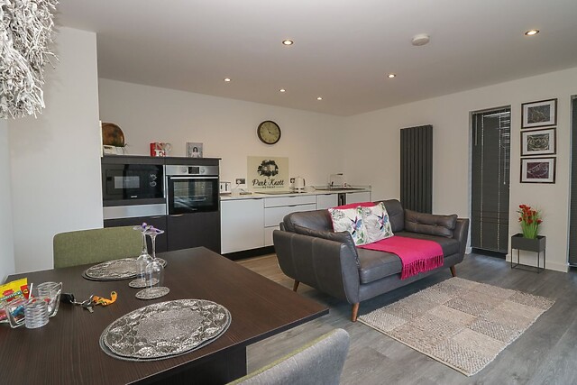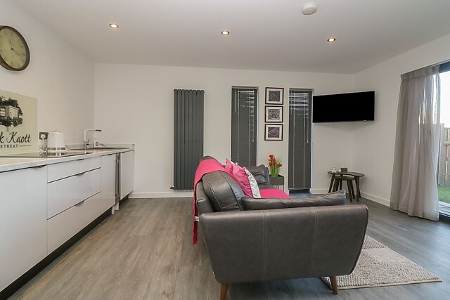 Arriving at Ella Lodge, you'll be greeted by breath-taking countryside views, inviting you to step onto the polished decking area. Slide open the patio doors to reveal a stylish and open-plan kitchen and living space, perfect for unwinding.