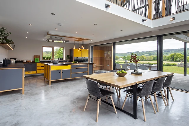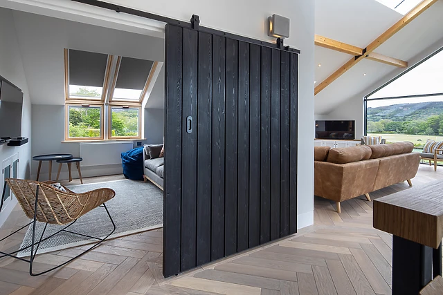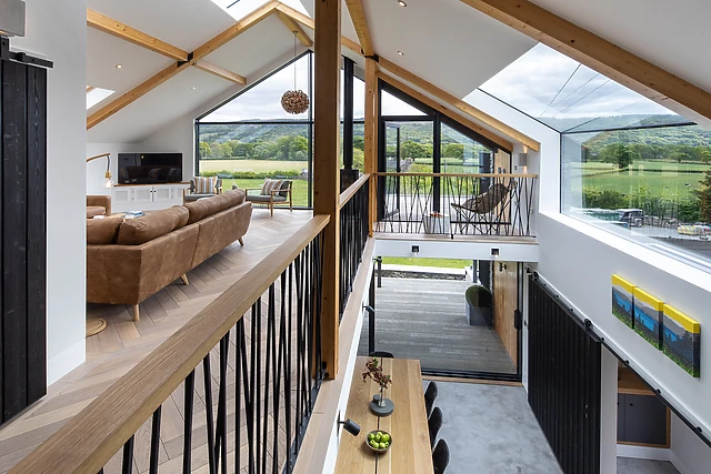 The heart of the home is the spacious kitchen/diner, featuring a bespoke dining table and a kitchen equipped with high-end appliances. Slide open the doors to the expansive decking area and indulge in the private hot tub, all while soaking up the serene rural views.