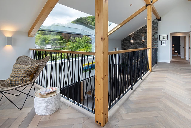 Upstairs, relax in the mezzanine-style sitting room with panoramic windows, or retreat to the snug TV room.