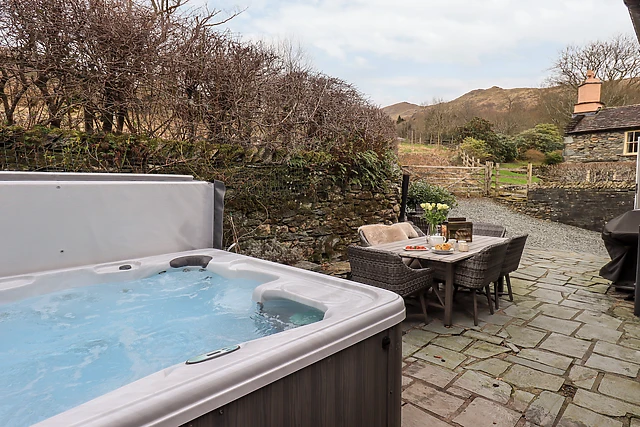 Indulge in the ultimate relaxation with the barn's private outdoor hot tub, where you can unwind under the stars.