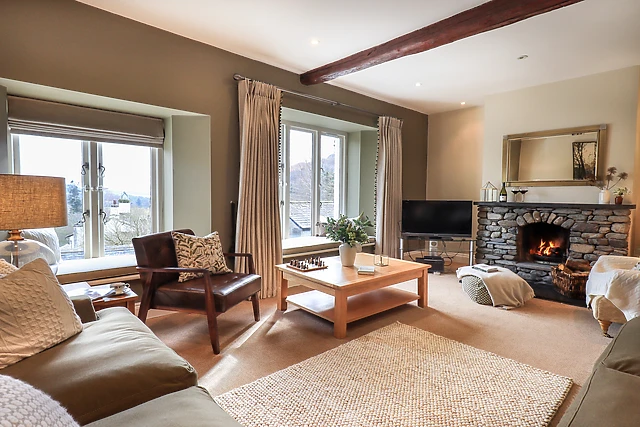 To get to Hart Head Barn, if travelling by car, take the M6 motorway and exit towards the Lake District. For those arriving by train, the nearest station is Windermere, from which you can take a taxi or local bus service. The property is situated between the charming villages of Ambleside and Grasmere.