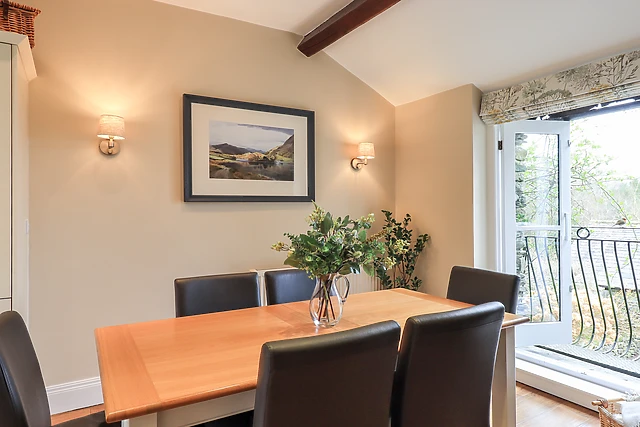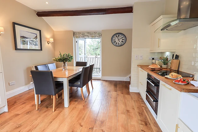 Indulge in the ultimate relaxation with the barn's private outdoor hot tub, where you can unwind under the stars. Inside, the cosy open fire beckons for snug evenings, while the well-appointed kitchen and dining area with a Juliette balcony provide the perfect setting for delightful meals with a view.