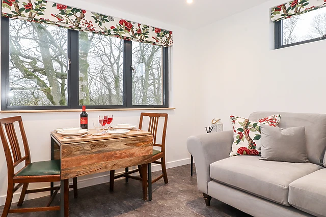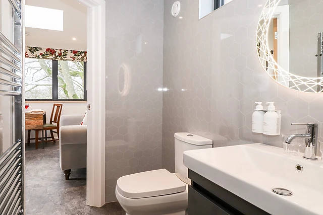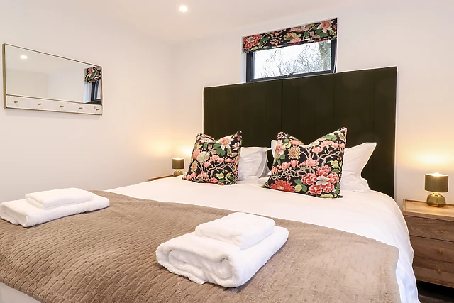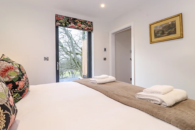 When the evening rolls in, freshen up in the sleek shower room, before cosying up for the night in the well-presented super-king-size bedroom. The private outdoor space for this property is simply delightful, offering a decking space with furniture for alfresco dining, and the added indulgence of the hot tub, beautifully framed by mature trees.