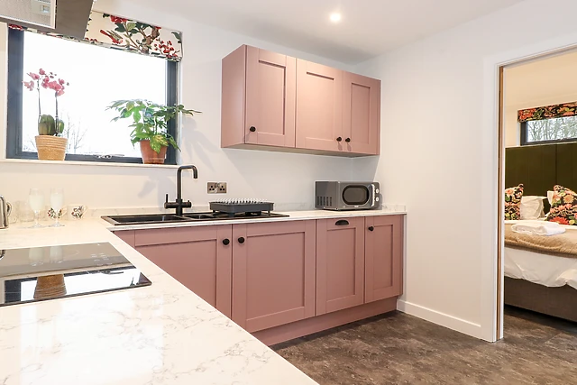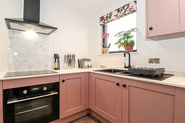 Park off-road and ascend the ramp, accessing this pretty property to discover an open-plan living space with a kitchen offering a selection of amenities to cater to your culinary needs. There is a dining space ideal for romantic meals served with a glass of fizz, and a sitting area with a Smart TV for movie nights in.