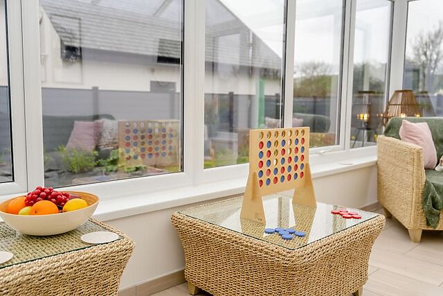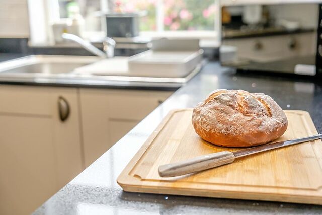 When it’s time to eat, head back to the kitchen to rustle up some dinner to share at the dining table. Afterwards, treat yourself to a glass of wine by the wood burner in the lounge area.