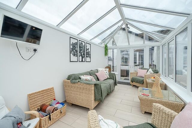 In the morning, wake up and have your morning coffee in the light and bright orangery/conservatory. Down a couple of steps, head outside and fire up a BBQ to cook a fun dinner on the stylish patio.
