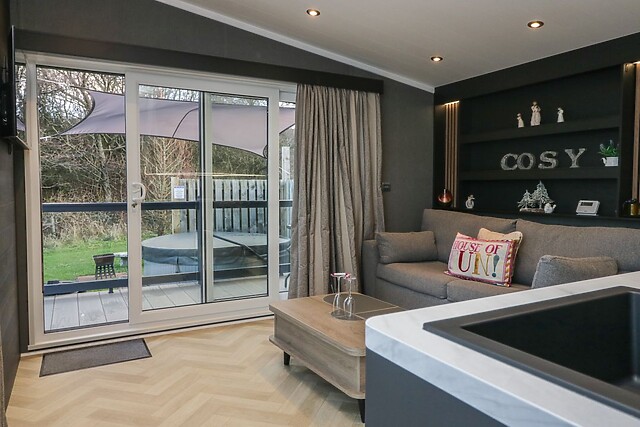 Cruise in the Cumbrian countryside and park outside this luxury lodge. The stunning views of the countryside will welcome you, step up onto the polished decking area and slide open the patio doors.