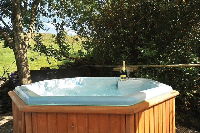 Yes, the accommodation boasts a luxurious hot tub, offering guests the perfect opportunity to unwind and enjoy the stunning fell views in a private setting.
