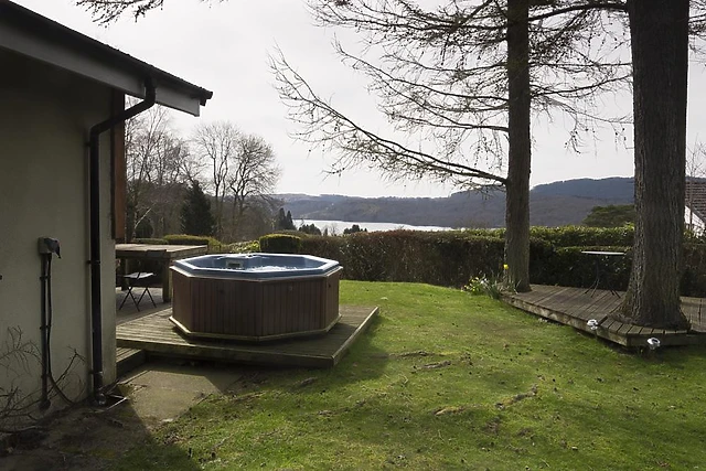 Yes, the accommodation boasts a luxurious hot tub, perfectly positioned for guests to enjoy panoramic views of Lake Windermere while soaking in the warm, bubbling waters.