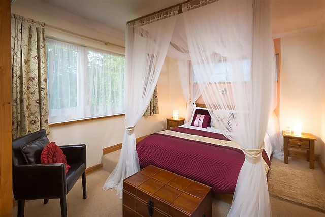 Immerse yourself in the tranquil charm of Lake Lodge, a quintessential retreat for couples seeking a serene getaway. This one-bedroom cottage, complete with a four-poster bed and an inviting hot tub, is the epitome of relaxation and comfort.