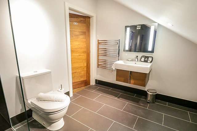 The open-plan living space boasts a contemporary kitchen and a cosy area for dining and unwinding. Step outside onto your private terrace and slip into the hot tub, where you can soak up breathtaking views of Lake Windermere and the surrounding fells.