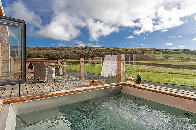 The accommodation boasts a bespoke hot tub, providing an intimate space to relax and unwind under the stars.