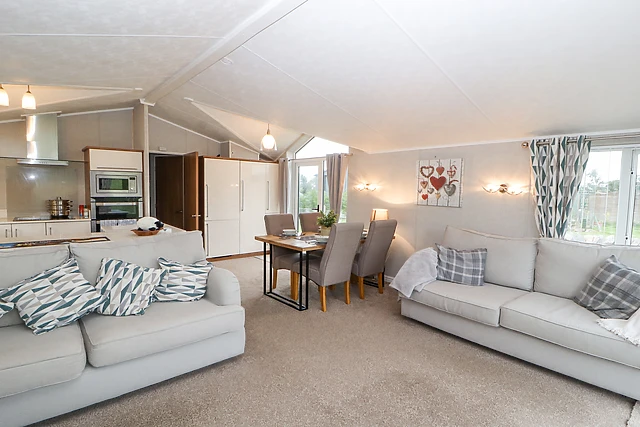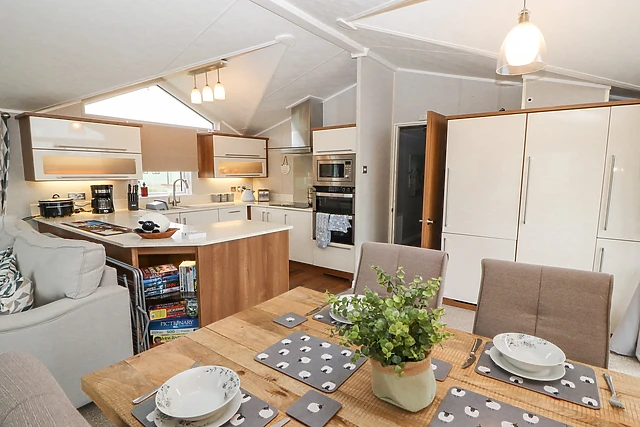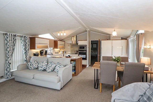 Park up off-road and take in the tranquillity of your new abode, breathing in the fresh, Cumbrian air from your private decked area, a haven for alfresco mealtimes before a long soak in the hot tub. Step indoors to reach the open-plan living space, providing a spacious area to prepare meals, gather together, and make memories as a family.