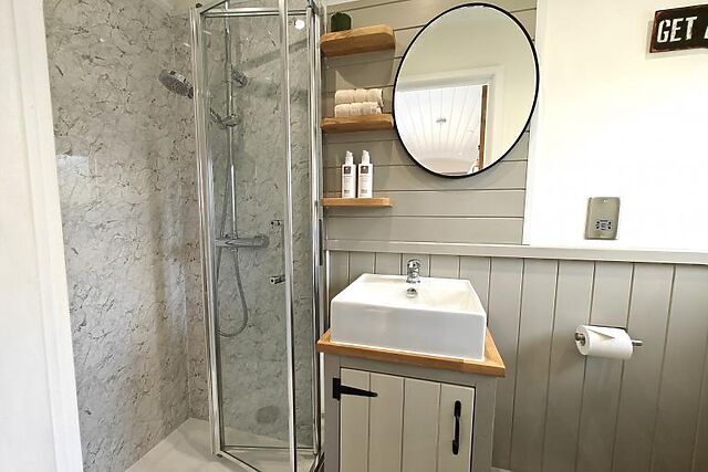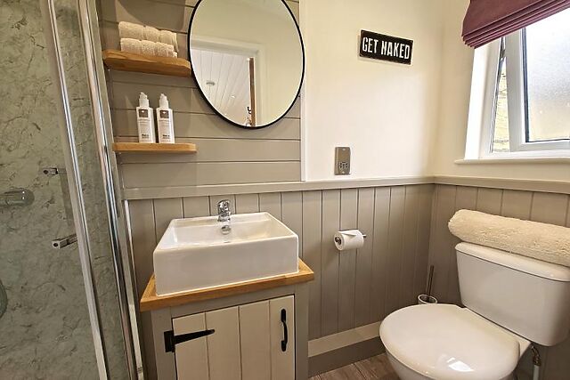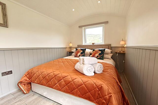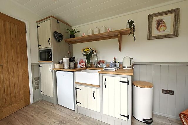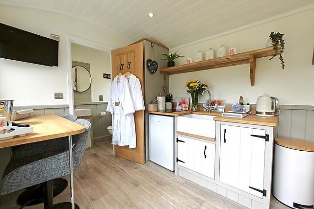 Settle down to a good film on the Smart TV before enjoying a great night’s sleep in the sumptuous double bed. This gorgeous shepherd’s hut benefits from the luxury of a stylish shower room where you can enjoy a steaming rinse after your long walks.