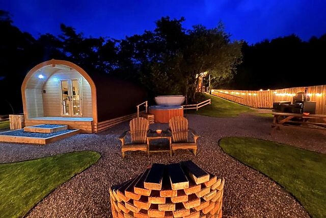 Yes, the accommodation features a private hot tub, perfect for relaxing under the stars and adding a touch of luxury to your stay.