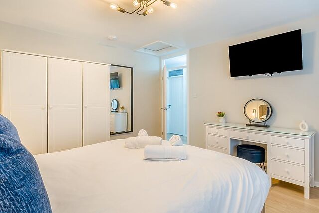 When you a ready to enjoy a superb night's sleep, wander through to the king-size bedroom, where there is a Smart TV, or the bunk bedroom, which is suitable for adults as well as children. There is also a family bathroom close by.