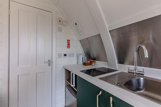 A furnished decking area at the front of the pod extends your living space, but the real wow-factor comes from the Finnish wood-fired hot tub – perfect for a chill-out session at any time of day or night. Additional outdoor space, laid to lawn, is shared by all five pods on-site; each sleeps a further 2 guests and can be booked separately – please ask for details.
