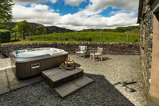 Indulge in the comfort of a spacious private garden, where a relaxing hot tub awaits to help you unwind while soaking in the glorious views of the Swirl Crag, part of the Coniston Mountain Range.