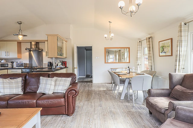 The lodge boasts three cosy bedrooms, two bathrooms, and welcomes pets, ensuring that every member of the family can join in the fun.