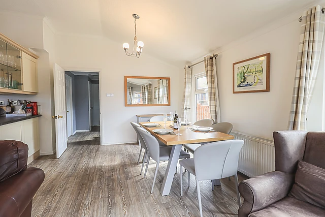 The lodge boasts three cosy bedrooms, two bathrooms, and welcomes pets, ensuring that every member of the family can join in the fun. The highlight of your stay is sure to be the private hot tub, where you can unwind and soak up the stunning views of the surrounding landscape.