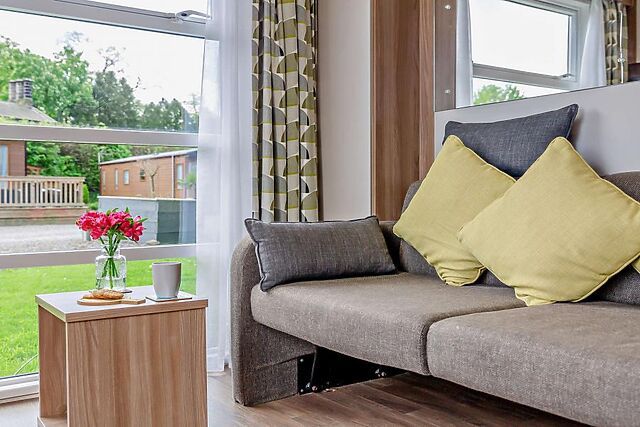 The lodge offers a space-saving pull-out double bed, which can be easily stowed away to maximize the living area during the day.