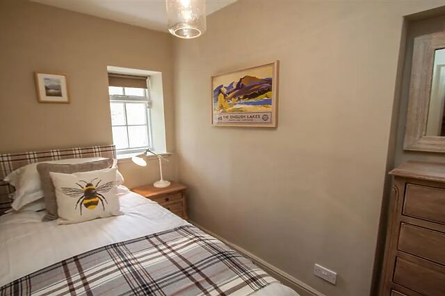 Upstairs plays host to the bedrooms, including a master with king-size bed and views towards Claife Heights at the rear of the property, while there is a snug single room to the front. The bedrooms have been tastefully furnished in a cottage style with carefully chosen colours and fabrics, giving the property that home from home feel.