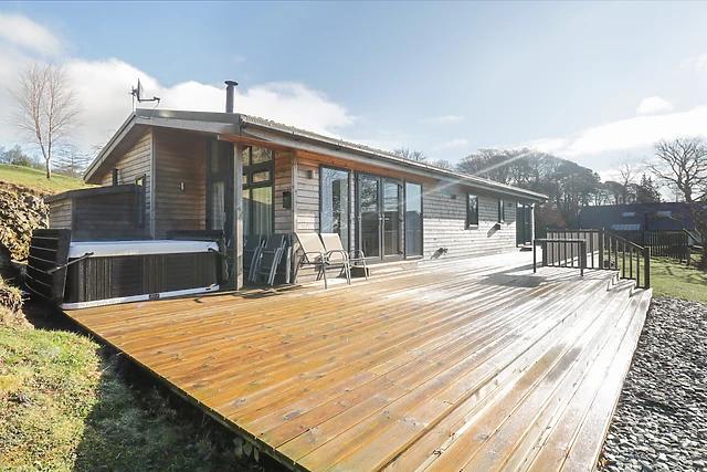 Yes, the accommodation boasts a luxurious hot tub on the decking area, perfect for unwinding and enjoying the views of the surrounding nature.