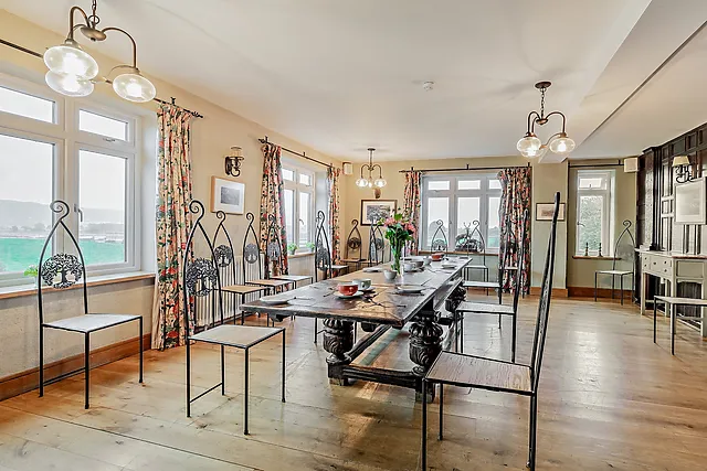 With ample space for up to sixteen guests across nine individually styled en-suite bedrooms, this beautiful retreat is a wonderful base for keen walkers, nature lovers, climbers and cyclists exploring the area’s spellbinding lakes, quaint market towns and magnificent woodlands. A you enter this spacious and relaxing property, the bar area provides a charming and airy space for sitting back and socialising, with plenty of seating, a cheery wood burner and several delightful dining areas including a grand main dining table.